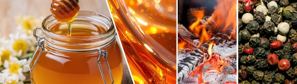 You discover a sun-kissed garden where golden nectar from honeycombs floats in the warm air and mingles with wild blossoms. Ripe, exotic fruits blend with the honey-sweet warmth.
