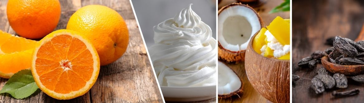 | Olfactive family: | amber, aromatic and sweet, butter cream, citrus, coconut, cotton candy, fruity, orange, pineapple, tonka bean, vanilla |
